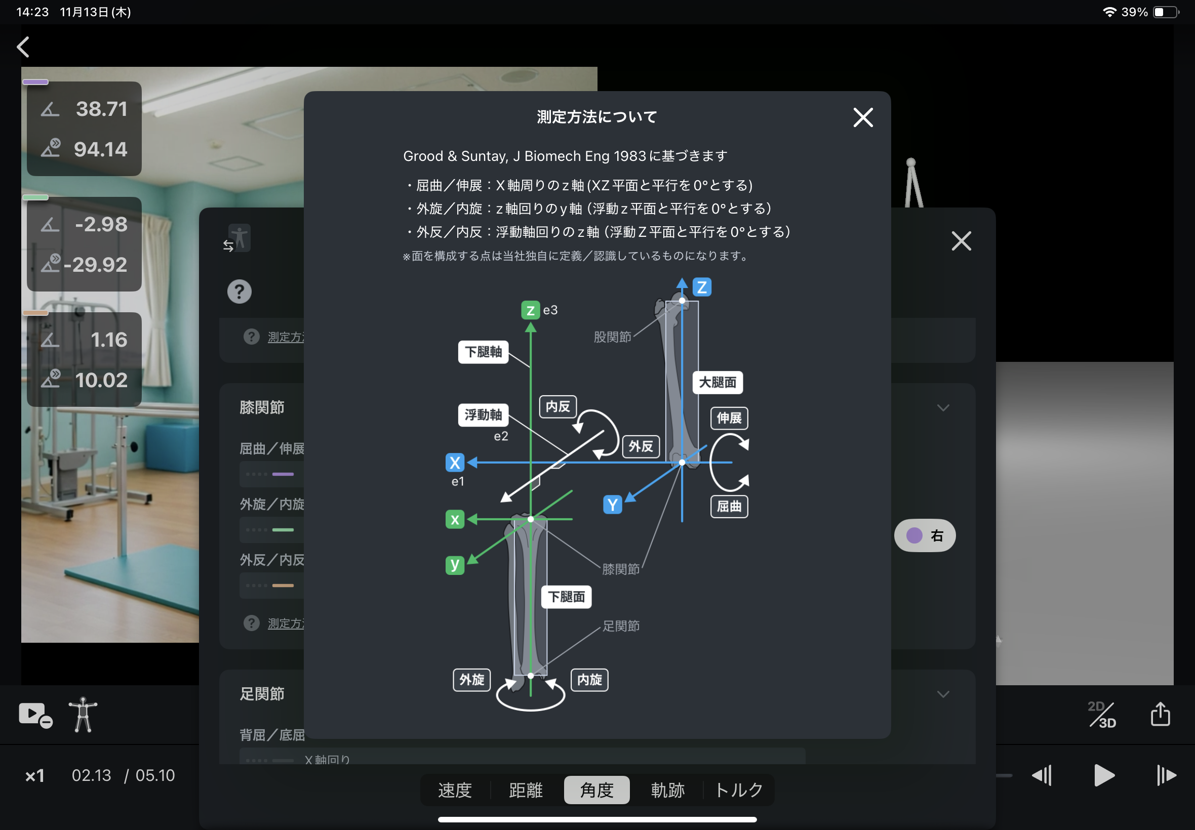 | 膝関節: | Grood & Suntay, J Biomech Eng 1983に基づく計算 |